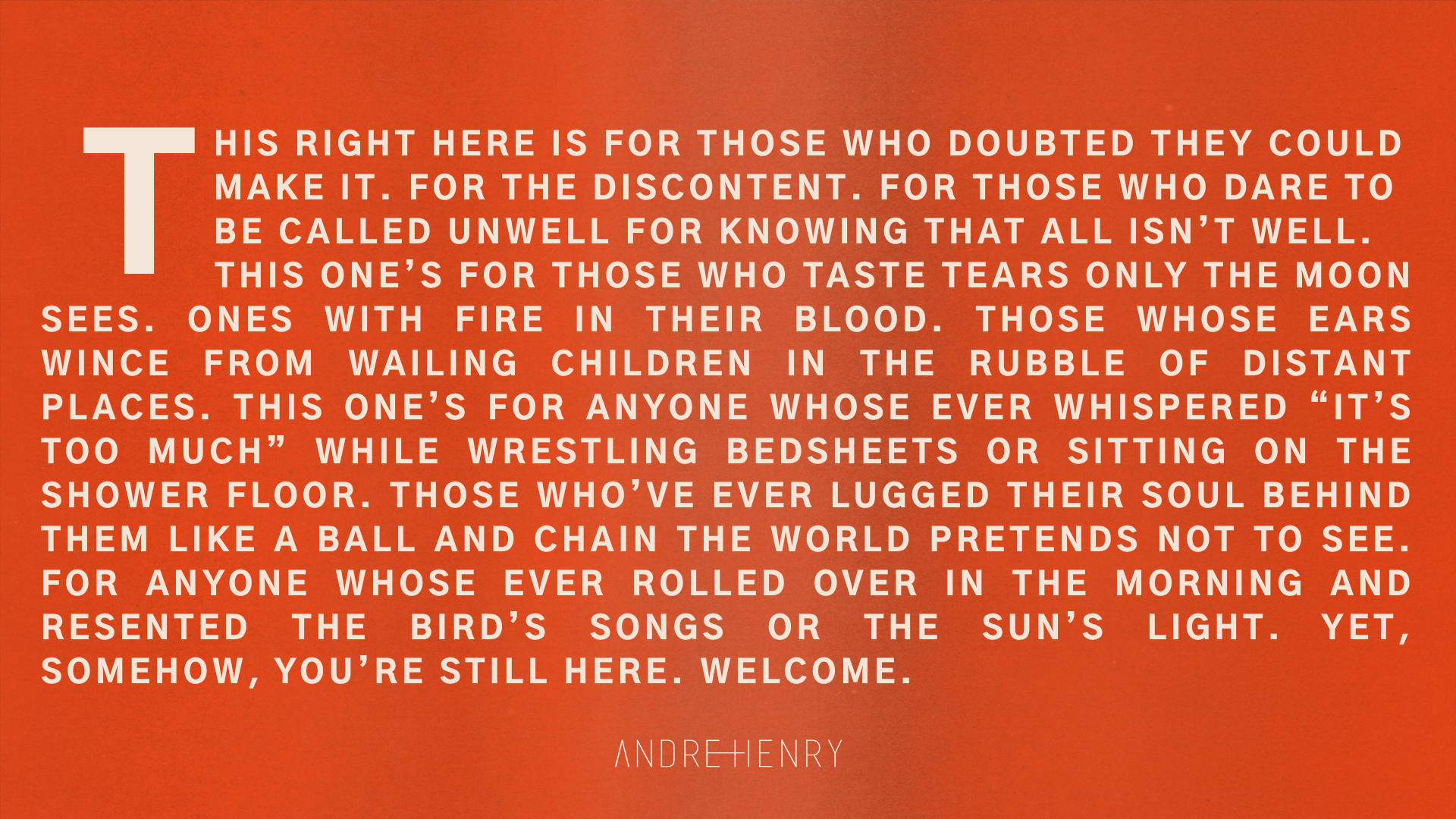 Whether he's marching the streets with local activists, writing his books, or performing his music, Andre is here to speak truth, spread joy, and shift culture through everything he creates.